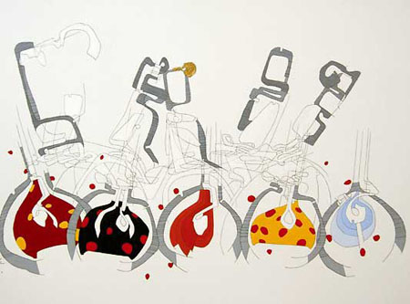 SAVAGE Medium: Acrylic/ lead render/ emulsion/ gold leaf on board, framed in oak. Size: 200x300mm Date:2005. Price upon request