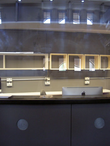 Re-design of independently sliding/removable & lockable panelling bar structure. Formed mdf/Perspex, with acrylic finish. 2010.