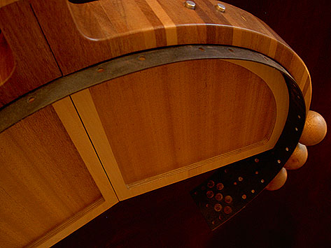 Cedjour Wall light Salvaged sprung steel collar. Hardwoods/ veneer, birch ply, Perspex, alluminium. 600mm diameter. 2002. Price upon request